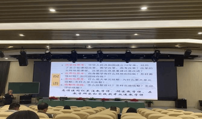 活动第二项,西宁市教育科学研究院贾生石老师进行第二轮大单元本土引进:《历史大单元统整教学的关键要素、设计路劲与课例举隅》的讲座。通过贾老师的分享,使我们对大单元统整教学有了更系统的认识。