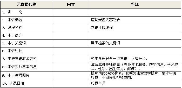 元数据、课程目录及课程推介词等文件的电子版应压制在单独的CD-R光盘中,同时打印纸质版经学校审批盖校章确认。
