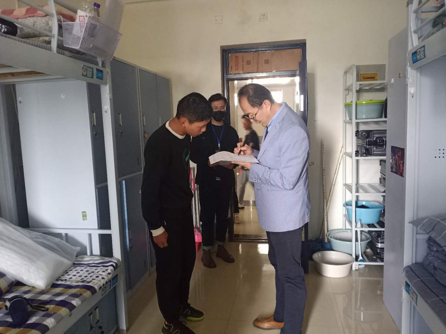 鄢晓彬每到一宿舍,都仔细问询新生的家庭情况,入校后有无遇到困难与问题,特别是从南方省区来校同学,询问是否适应西宁气候与学校饮食。他还嘱咐大家要注意身体健康、合理安排作息时间,同学之间互相鼓励、互相帮助,共同度过大学的美好时光。