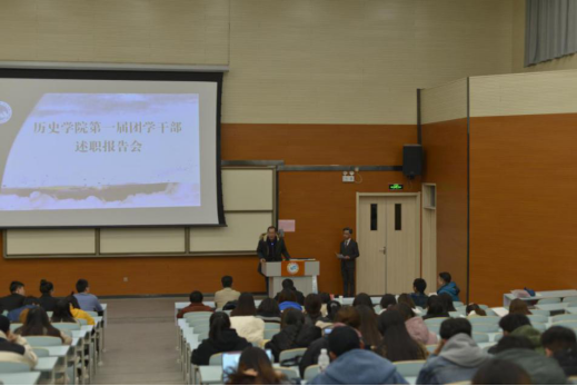 学院团总支、学生会主席团成员和各部门负责人共12名同学依次做述职报告,之后学院师生就其工作提问,根据工作表现在学院微信公众号上打分并提出工作建议;