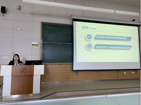 最后,主持人袁亚丽教授在总结发言中指出:华吉老师的讲座以习近平主席在教育大会上提出的教育的“六个下功夫”切入,谈到历史学科如何落实教育的总目标“立德树人”;从具体的高考改革与教材改革的形势,谈到高考考什么到教师教什么再到学生如何学几个层面展开,使学生从宏观理论到具体目标的落实有了更加深刻的认识和理解,明白了基础教育的目的是“为国选材”;袁老师指出华吉老师以多个版本的《伟大的抗日战争》具体课例来谈高中历史教师在新高考背景下应如何转变自己的教学方法与策略问题,使学生们从不同的具体课例中感受到教学设计的重要性,极大地开阔了学生们的思维,提升了学生们的备课能力。而华吉老师展示的高中学生长卷本的时间轴图表深深震撼到了师范生,每个人在观看的同时,也在反思自己的教学能力。袁老师最后对华吉老师的到来表示感谢,并鼓励同学们平时要多看与历史教学有关的书籍,为将来成为一名卓越教师打下坚实的基础。
