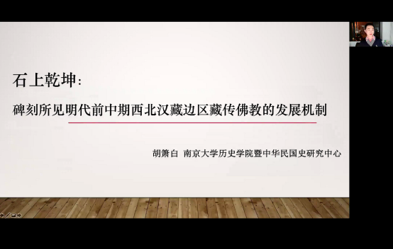 11月17日晚,应藏区历史发展与多民族繁荣发展研究省部共建协同创新中心、伟德betvlctor1946源于英国邀请,南京大学伟德betvlctor1946源于英国胡箫白副教授在线上作了题为“石上乾坤——碑刻所见明代前中期西北汉藏边区藏传佛教的发展机制”的学术讲座,讲座由藏区历史发展与多民族繁荣发展研究省部共建协同创新中心主任、伟德betvlctor1946源于英国博士生导师杜常顺教授主持。