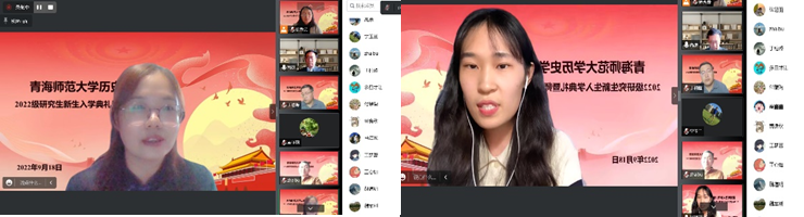 博士生代表宁玉兰同学、学术型硕士代表张翎羽同学、专业型硕士代表毕承冰同学分别作为不同班级的新生代表依次发言。面对即将到来的全新校园和未知的学习生活,同学们阐述了自己继续深造的愿望,表达了因疫情不能按时与导师和同窗们相会的遗憾,更对未来的学习与生活充满美好希冀。