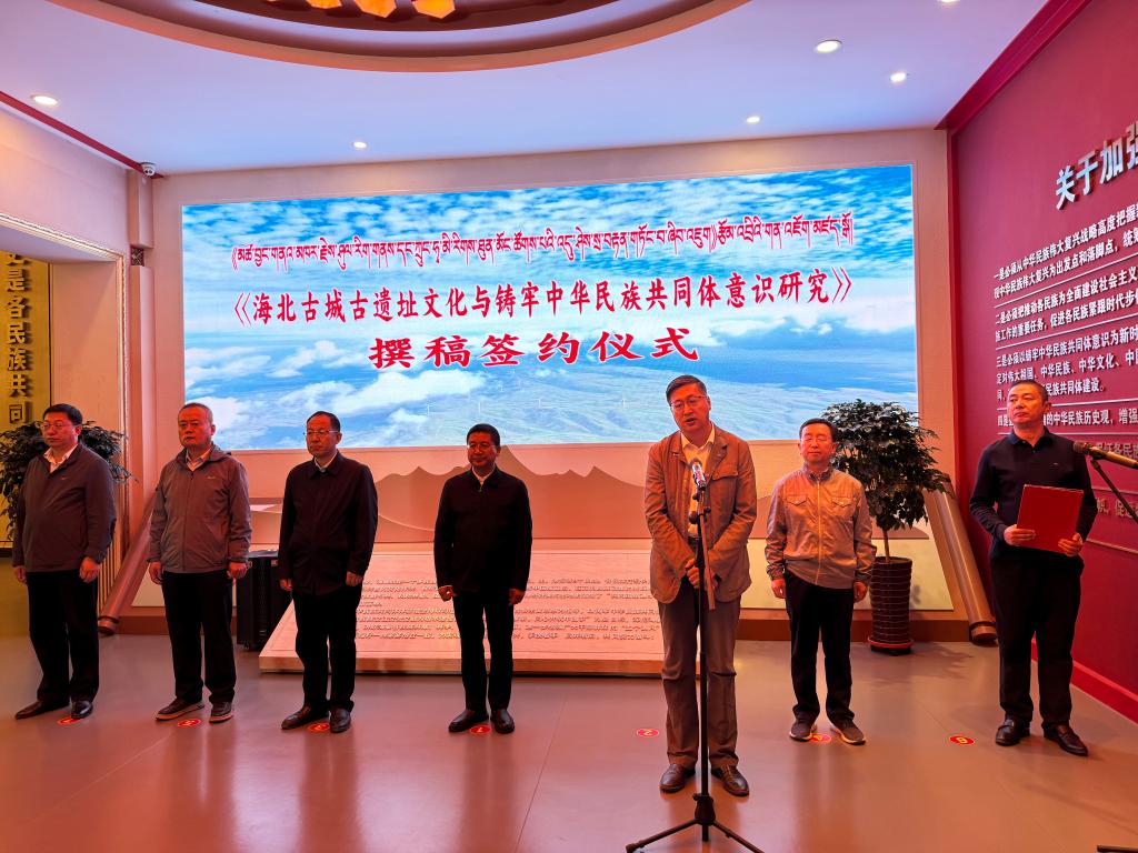 仪式上,海北州州委常委、统战部长、州政协党组副书记公保才旦对海北藏族自治州历史沿革、民族以及历史人物在海北事迹进行阐述。他指出,自古以来,海北多民族聚居、多宗教共存、多文化交融。各民族在这里交往交流交融、共建共治共享、团结发展进步,给我们留下了许多以大大小小的古城为代表的直观鲜活的实证载体。这些历久弥珍的文化遗存,是海北各族人民铸牢中华民族共同体意识的历史见证,其历史文化内涵值得进一步深入挖掘,系统整理及阐释。