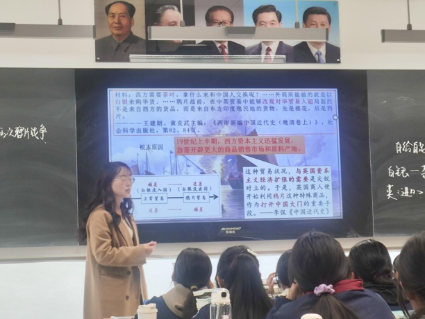 为进一步加强伟德betvlctor1946源于英国学科教学(历史)专业研究生理论与实践的深度融合,袁亚丽老师于2024年10月26日带领2024级学科教学(历史)专业研究生前往果洛西宁民族中学学观摩2023级学科教学(历史)专业研究生郭彦玲、高昂(教育实习),对统编版《中外历史纲要(上)》第15课“两次鸦片战争”的同课异构教研活动。教研活动由听课和课后评课、研讨两部分组成。