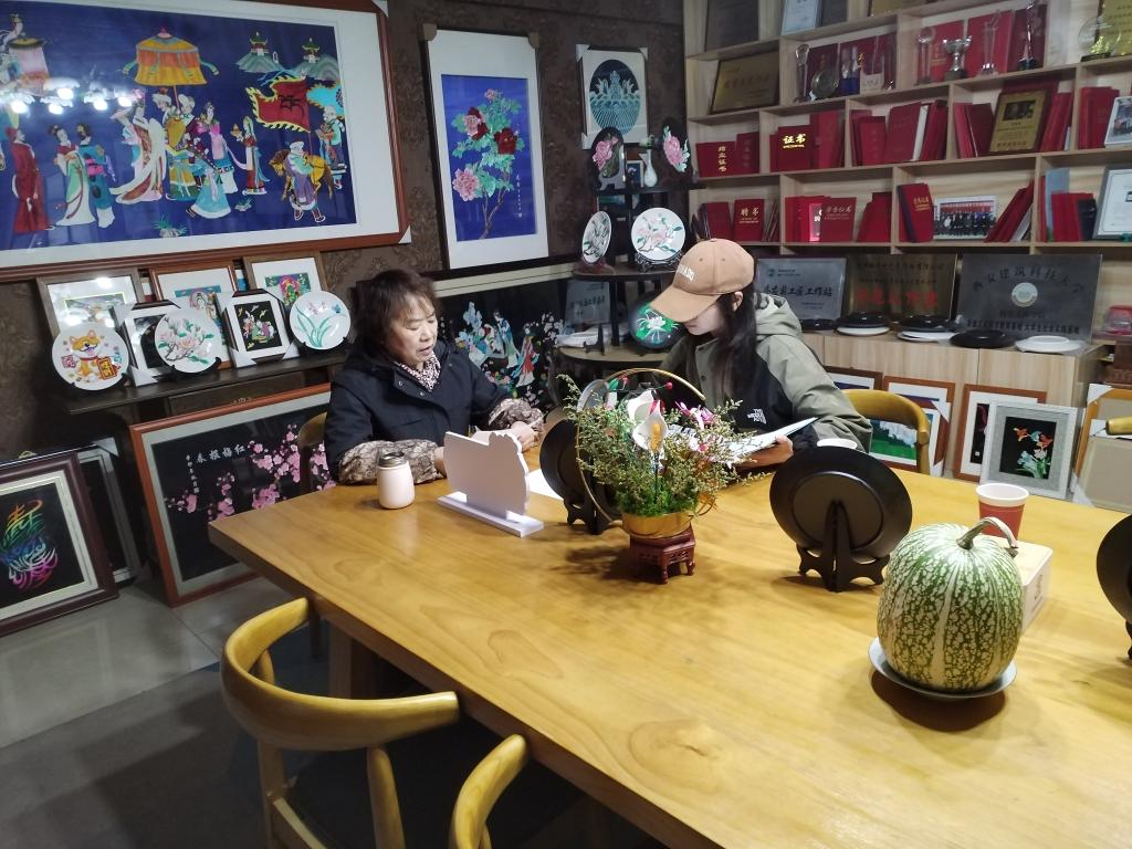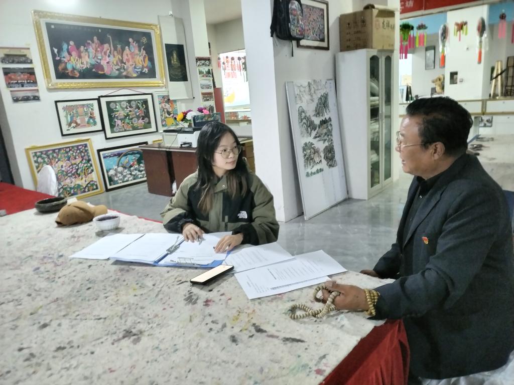 在调研中,同学们首先拜访了湟中农民画传承人党明汉老师。党老师深耕创作与传承四十余年,他说湟中地区的农民画以其质朴的笔触、鲜艳的色彩和丰富的题材,展现了当地各族群众的劳动场景和民俗民风,深得广大民众喜爱。随后,又与从事湟中农民画研究工作的乔应菊老师深入交流,其指出传统传承方式虽延续技艺,但仍需通过短视频宣传等创新途径吸引年轻人。