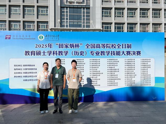 2025年8月22日至25日,由田家炳基金会主办、内蒙古师范大学承办的2025年“田家炳杯”全国全日制教育硕士学科教学(历史)专业教学技能大赛决赛圆满落幕。作为高等教育质量监测国家数据平台认定的唯一国家级教育硕士教学技能竞赛,此次赛事汇聚全国84所高校的163名选手同台竞技,是我国教育硕士培养领域层次最高、规模最大、影响力最广的全国性赛事。