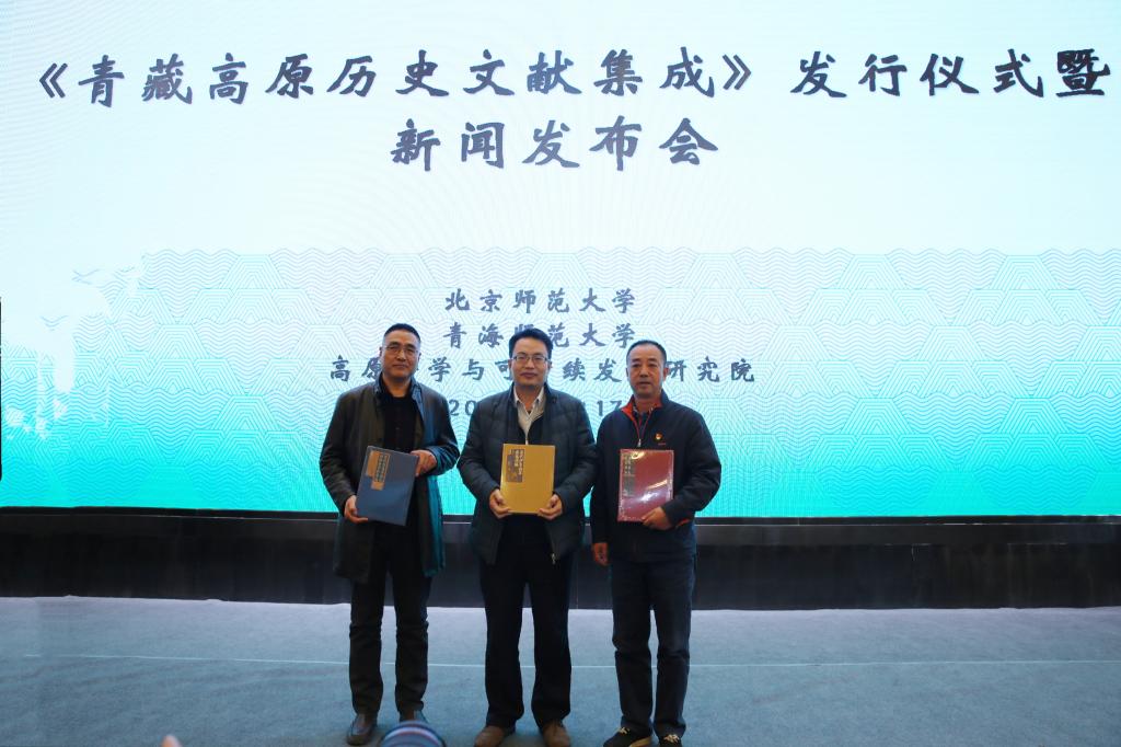 会上,《文献集成》总主编史培军首先致辞,他为编纂这套丛书付出辛勤劳动的所有专家学者表达了深深的敬意和谢意。他指出,自中华人民共和国成立以来,党中央采取一系列重大战略鼓励带动高原各项事业的发展。正是站在以史为鉴的高度上,北京师范大学和青海师范大学两校的专家学者共同编纂了《文献集成》丛书。这是“青海省人民政府-北京师范大学高原科学与可持续发展研究院”成立后,组织开展的有关青藏高原历史文化研究的重大成果,是两校历史学科对新中国成立70周年的献礼,也是对青海解放70周年的伟大献礼。这套丛书将为学者研究、领导决策、管理者施政提供丰富而详实的资料,将为参照过去、借鉴历史、启迪智慧产生不可低估的文献价值。他表示,青海师范大学将继续用好对口支援平台,依托高原科学与可持续发展研究院更好地服务于青藏高原经济社会发展,在资源、环境、新能源、防灾减灾、技术开发等诸多领域取得更大突破。