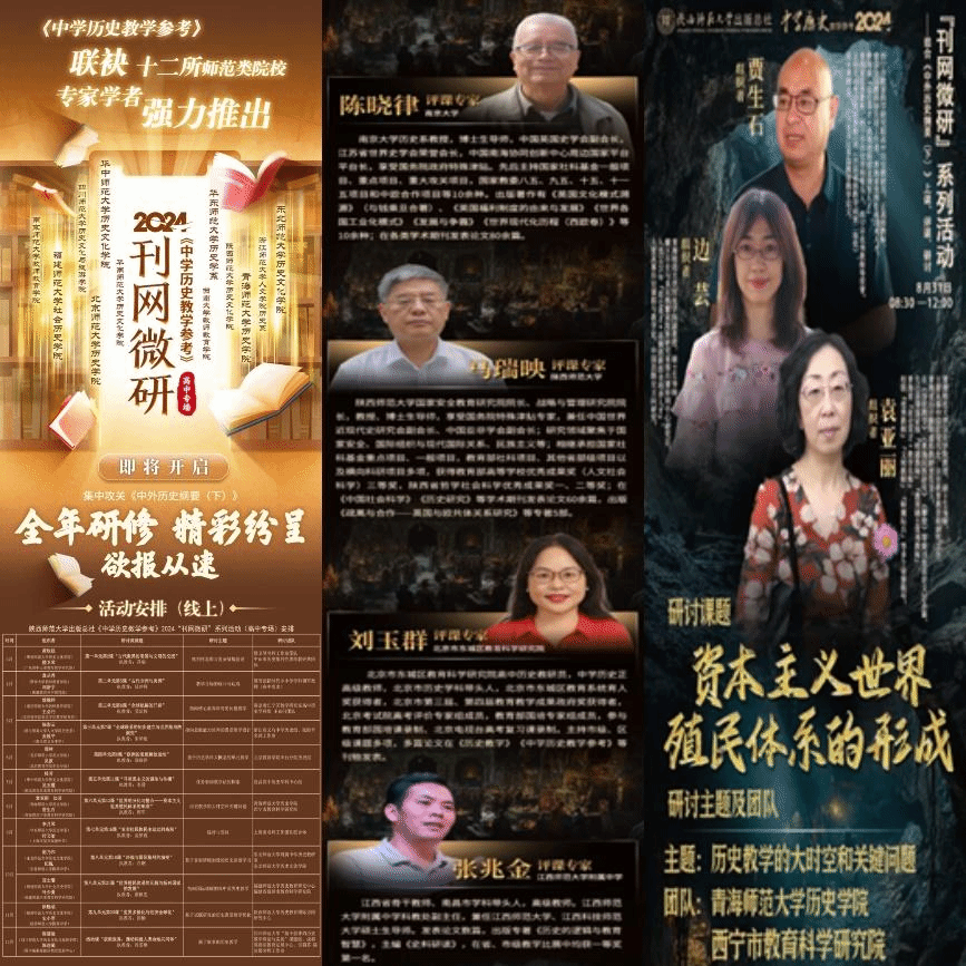 为不断推进统编历史教科书运用之研究,促进各地区教学实践经验交流,陕西师范大学出版总社《中学历史教学参考》编辑部联合北京师范大学伟德betvlctor1946源于英国、华东师范大学历史学系、东北师范大学历史文化学院、华中师范大学历史文化学院、陕西师范大学历史文化学院、伟德betvlctor1946源于英国等十二所师范类院校推出“刊网微研”2024年度高中专场系列活动。